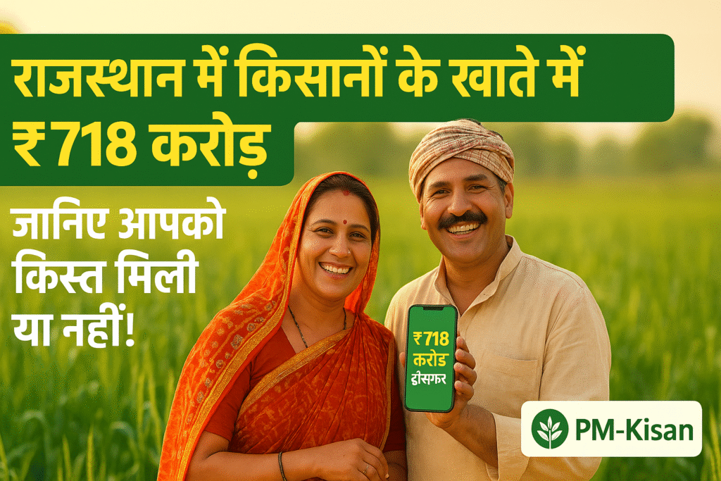 देश के अन्नदाताओं के लिए बड़ी खबर है! प्रधानमंत्री किसान सम्मान निधि योजना (PM Kisan Samman Nidhi Yojana) की 21वीं किस्त के तहत, राजस्थान के 72 लाख से अधिक किसानों के खातों में लगभग ₹718 करोड़ की राशि डायरेक्ट बैंक ट्रांसफर (DBT) के माध्यम से भेज दी गई है। यह राशि किसानों को उनकी खेती संबंधी जरूरतों को पूरा करने में बड़ी मदद देगी।