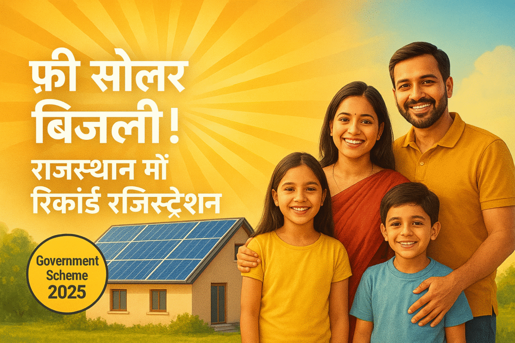 PM Surya Ghar Yojana free electricity 2025 की सबसे बड़ी खबर! राजस्थान में 20,000 से ज़्यादा परिवारों ने एक ही दिन में किया रजिस्ट्रेशन। जानें कैसे मिलेगी 150 यूनिट फ्री बिजली और सब्सिडी।